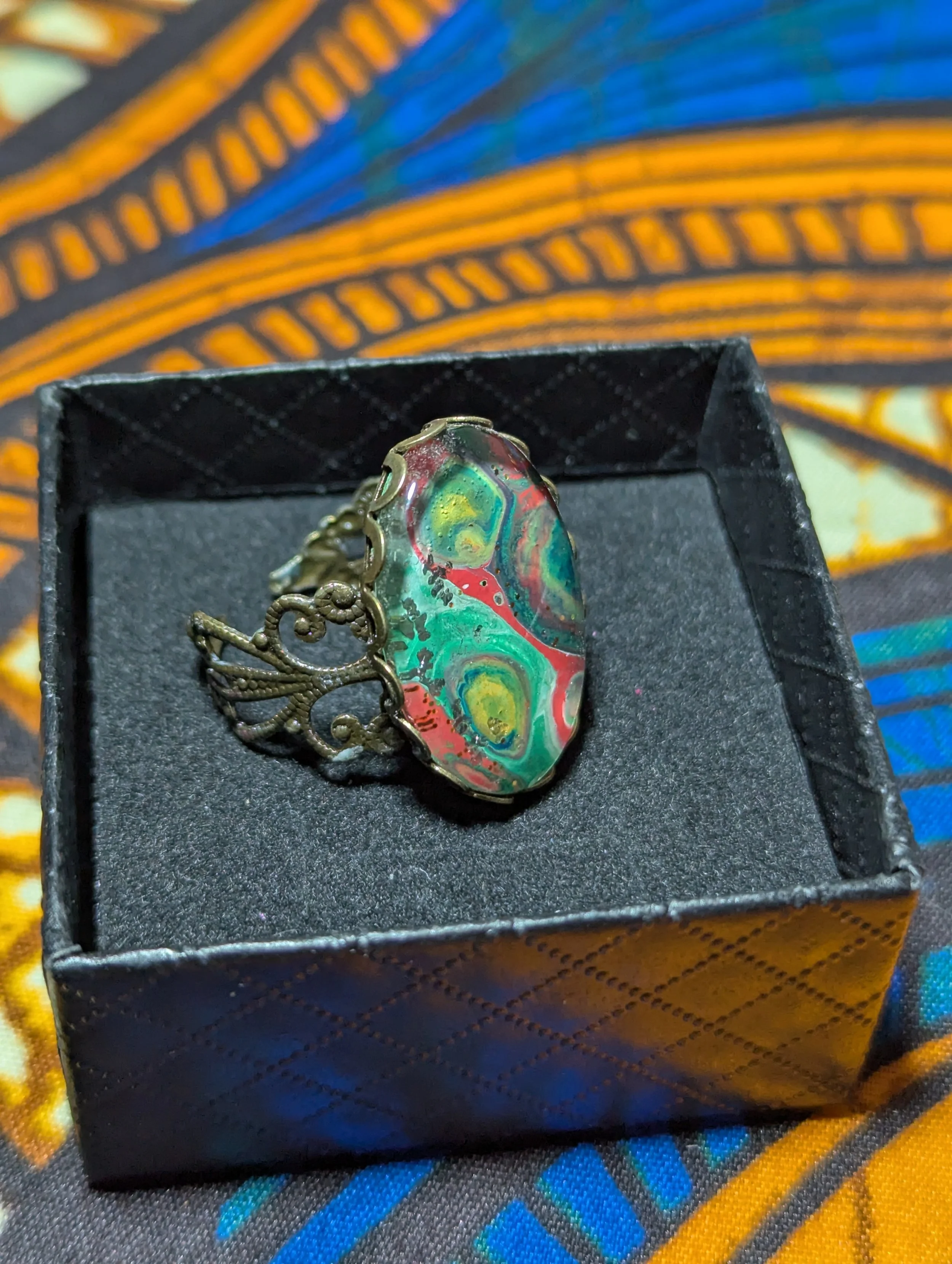 Large Filigree Ring with Handmade Art under Cabochon #9